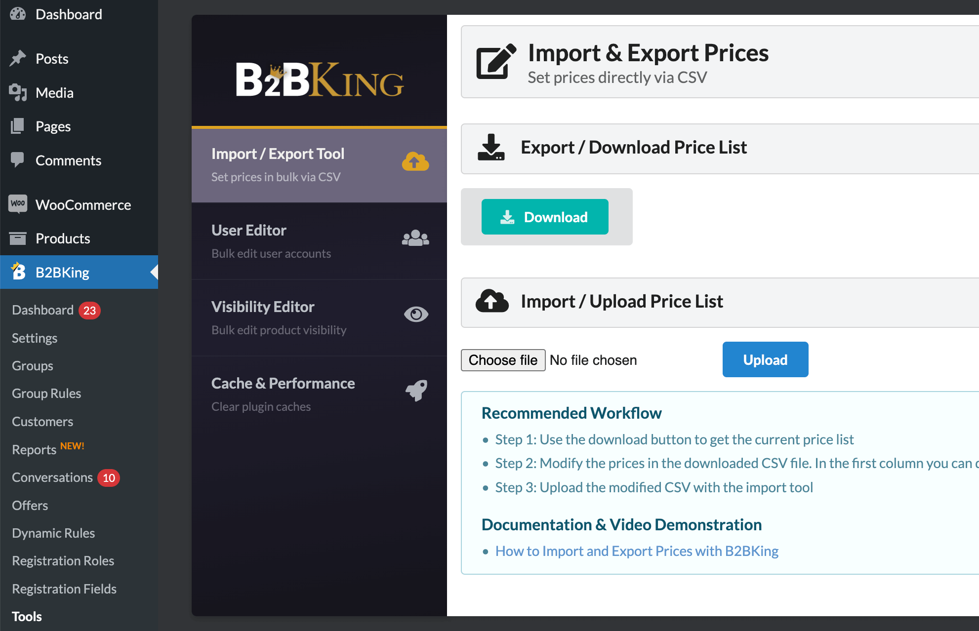 For stores already comfortable with WooCommerce's native import system, B2BKing integrates seamlessly with that workflow as well. This means you can continue using familiar processes while adding B2B pricing capabilities. Whether you are setting up a new store or updating prices for the new quarter, bulk imports make the process manageable.