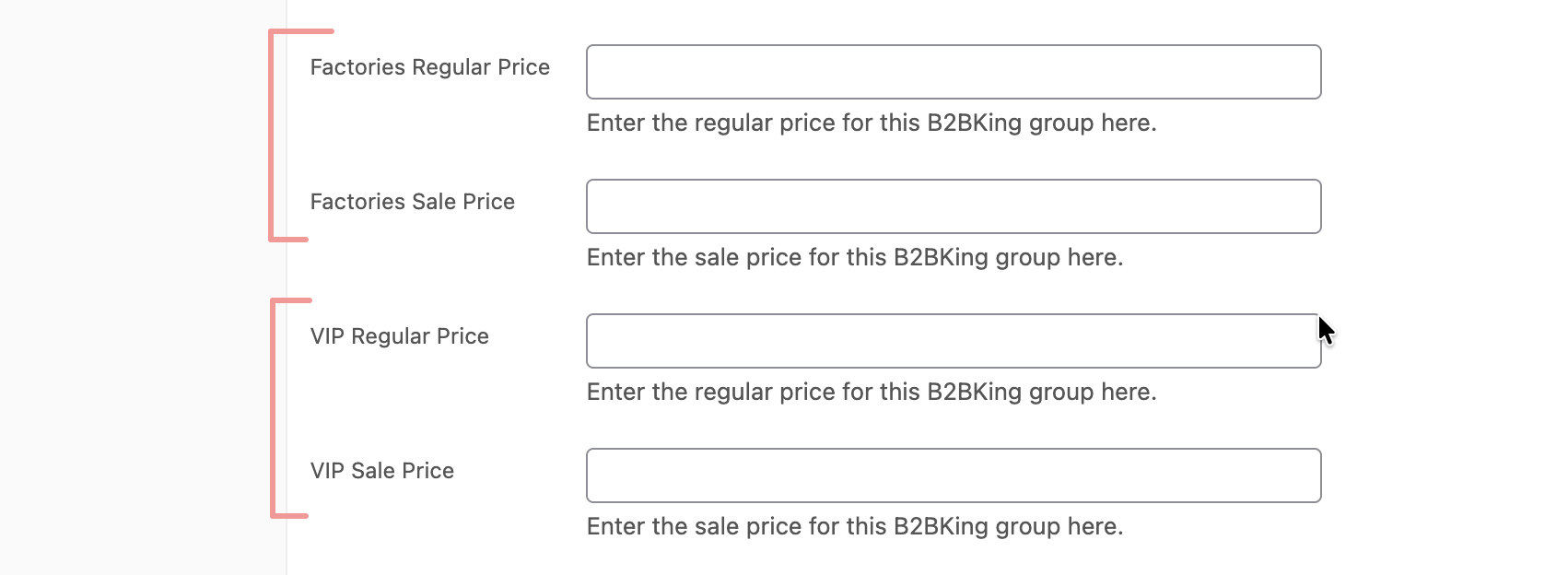 You can set wholesale group prices directly on each product. For every WooCommerce product (including variable products with multiple variations), you can enter a different price for each B2B customer group. So a product that retails at $199 for B2C buyers might be priced at $179 for your "Wholesale" group and $159 for your "Premium Wholesale" group.