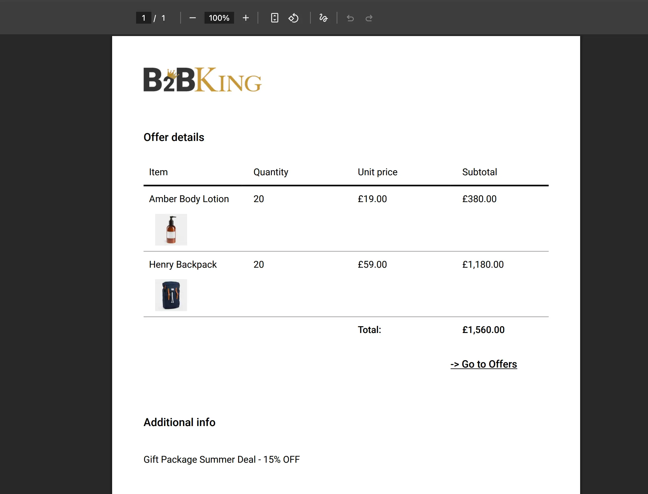 B2BKing can also generate branded offer PDFs with your company logo, which can be sent by email automatically. The entire quote-to-order workflow stays within WooCommerce, so there's no need for external tools or email chains.