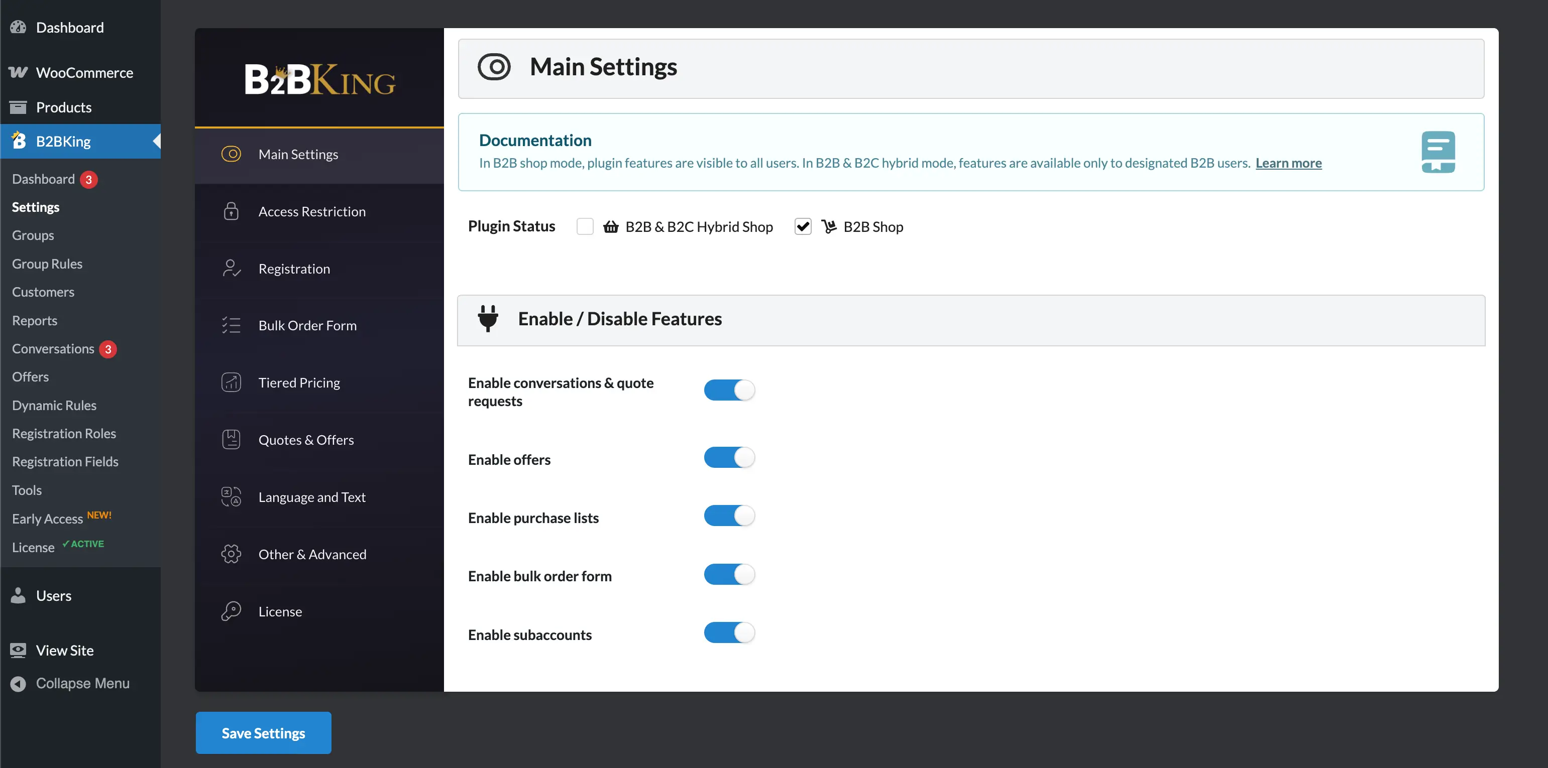 Introducing B2BKing - a comprehensive plugin that transforms WooCommerce into a fully featured business to business platform, while still supporting B2C customers in a hybrid mode if needed. With 137+ features and over 14,000 active installs worldwide, it's the most advanced WooCommerce wholesale and B2B solution available today.