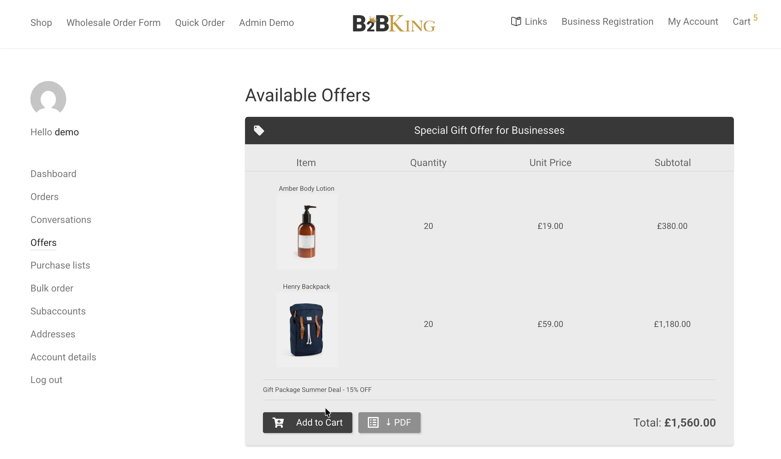 The cart is where B2C and B2B diverge again. In retail, every customer typically sees the same payment and shipping options. In wholesale, available methods often depend on the relationship between the buyer and the seller.