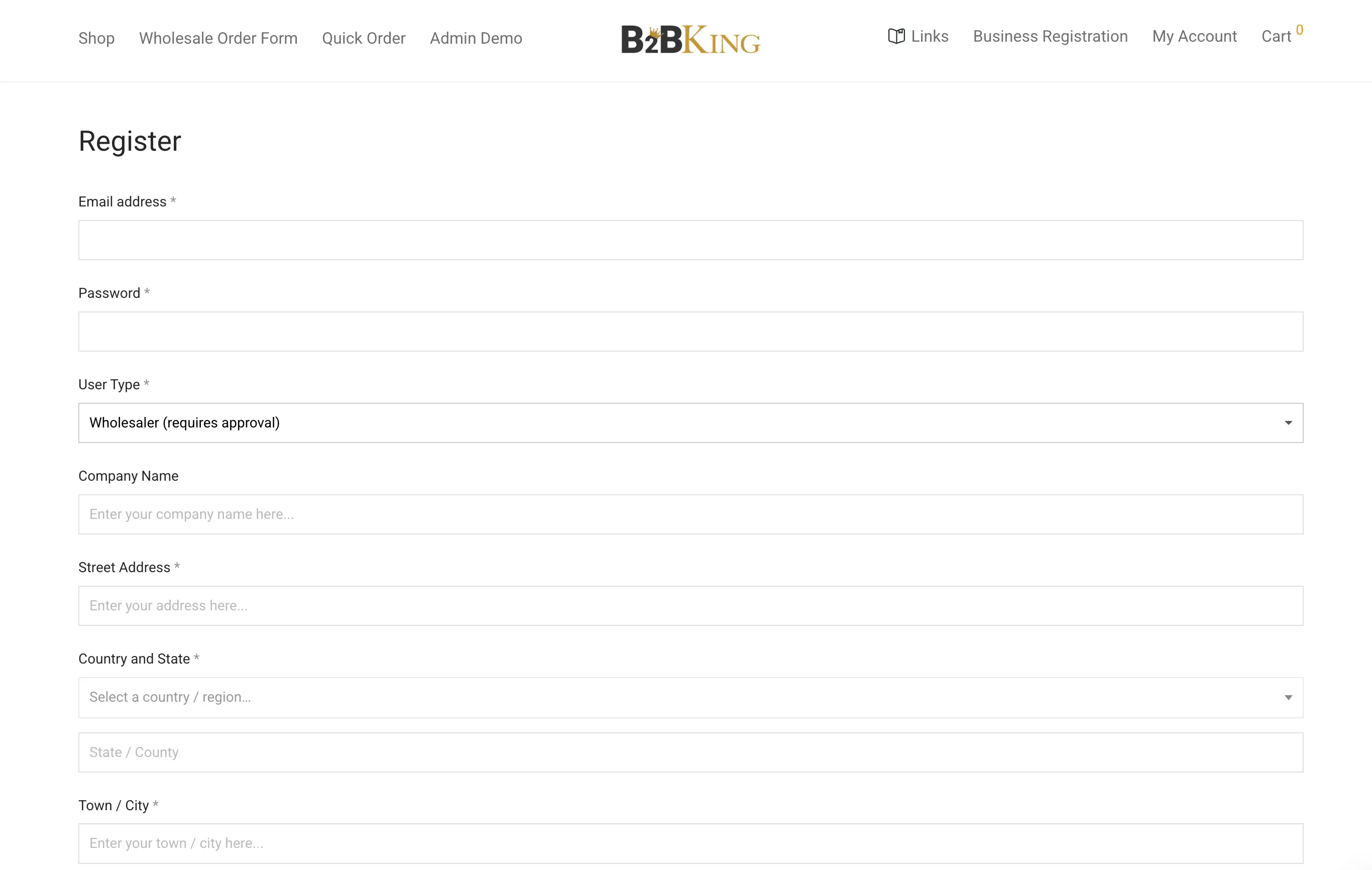 The first touchpoint for any new wholesale buyer is registration, and it is also where B2B requirements diverge most clearly from retail. A standard WooCommerce signup form asks for an email and a password. A wholesale buyer typically needs to provide much more: a company name, a VAT or tax ID, a resale certificate, a business license, contact details for accounts payable, and so on.